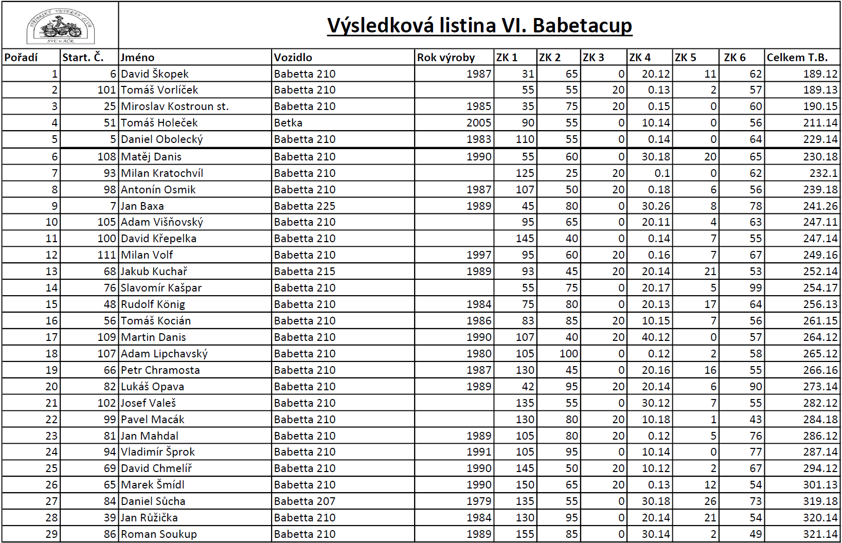 Babettacup, jak již název napovídá, je jízda vypsána pro všechny modely Babett vyrobených v ČSSR.