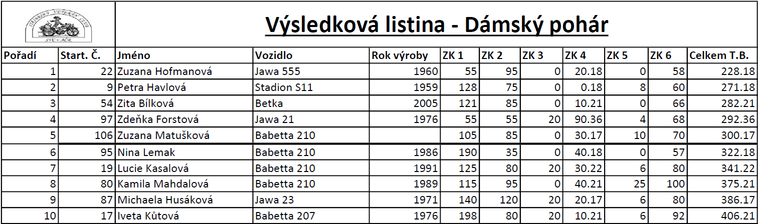Jízda je společná pro obě kategorie, s délkou trasy cca 70km s přestávkou na oběd a několika soutěžními úkoly. Výsledné hodnocení již bude mít každá z kategorií samostatně a v případě dostatečného poštu přihlášených žen bude hodnocen i dámský pohár bez rozdílu kategorie.