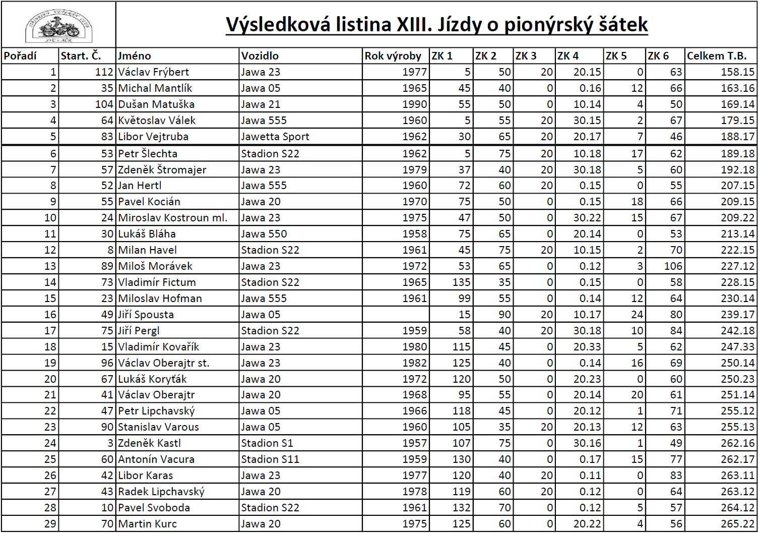 Od 8:00 budou probíhat přejímky a registrace, v 10:00 proběhne rozprava k jízdě a v 10:30 začnou první účastníci vyrážet na trasu. Děkujeme Vám za vaši přízeň a budeme se těšit na shledanou.
